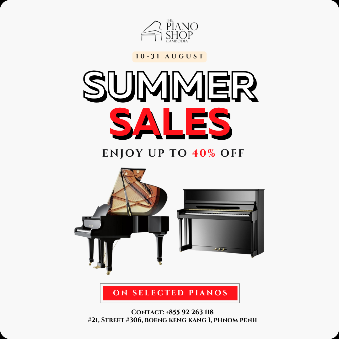 From 10th to 31st August, enjoy up to 40% OFF on a wide selection of Yamaha and Roland upright and grand pianos at The Piano Shop Cambodia.