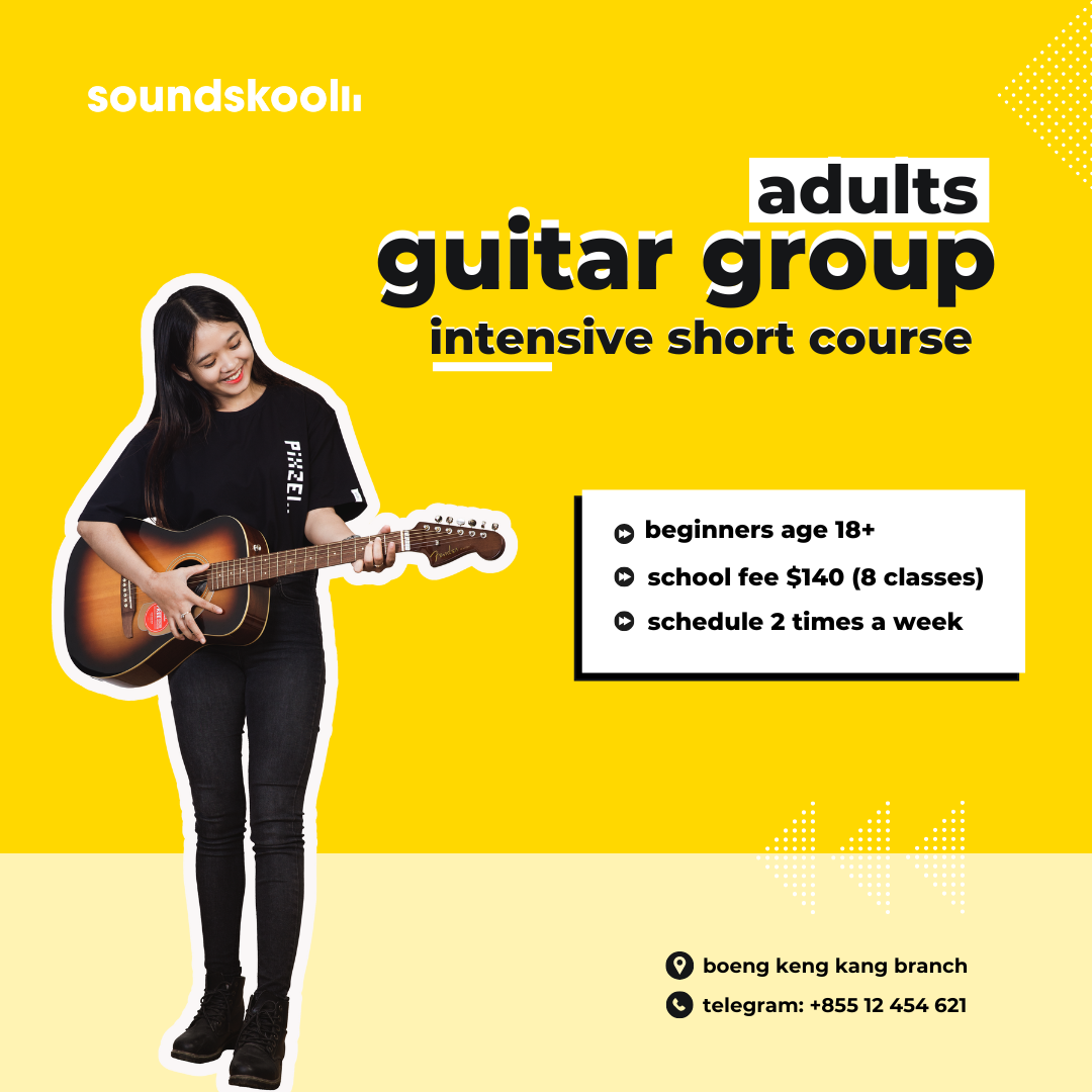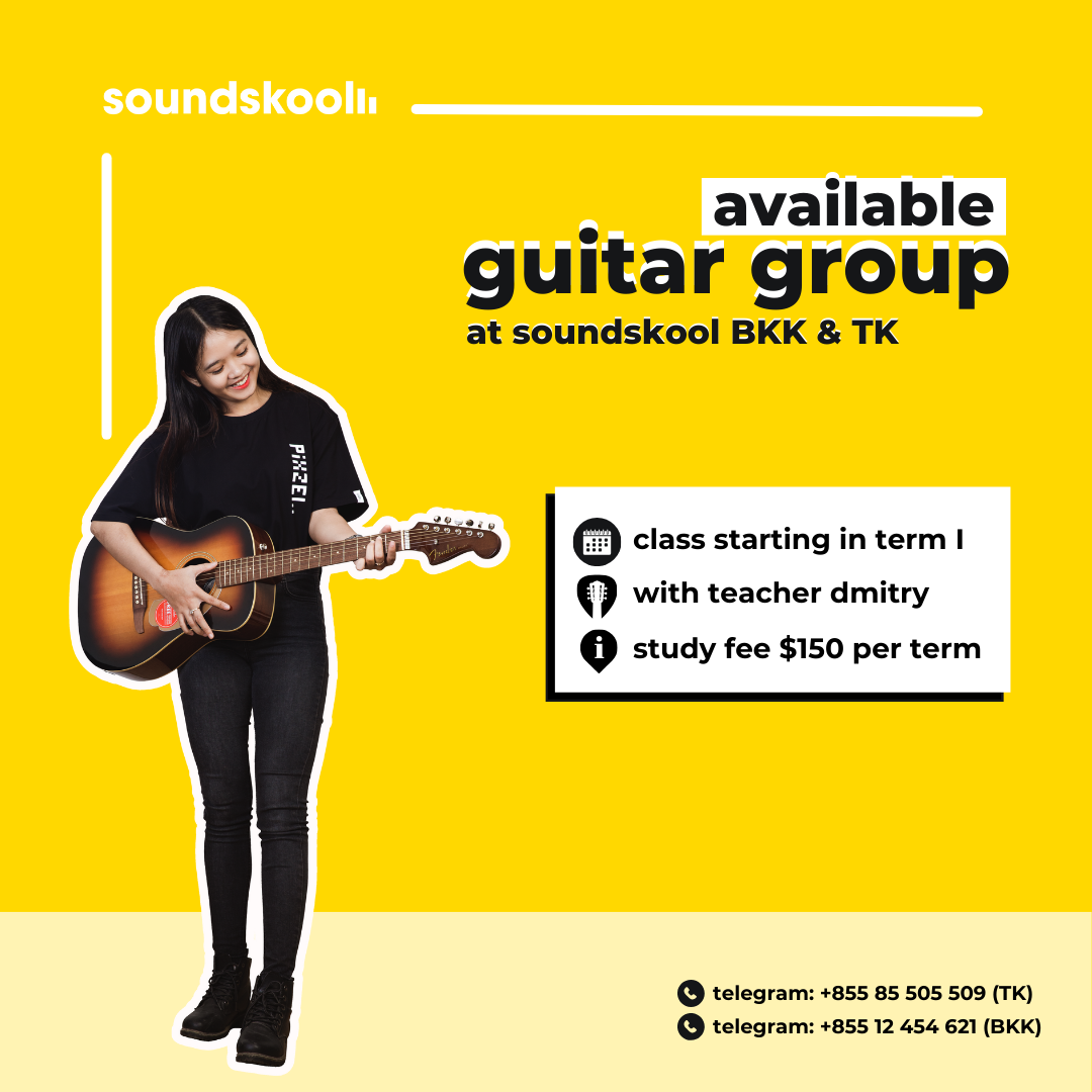 🎸 Guitar Group Class is now available at Soundskool Boeng Keng Kang and Toul Kork! Classes start this term. Register now to begin your guitar journey. 🎶