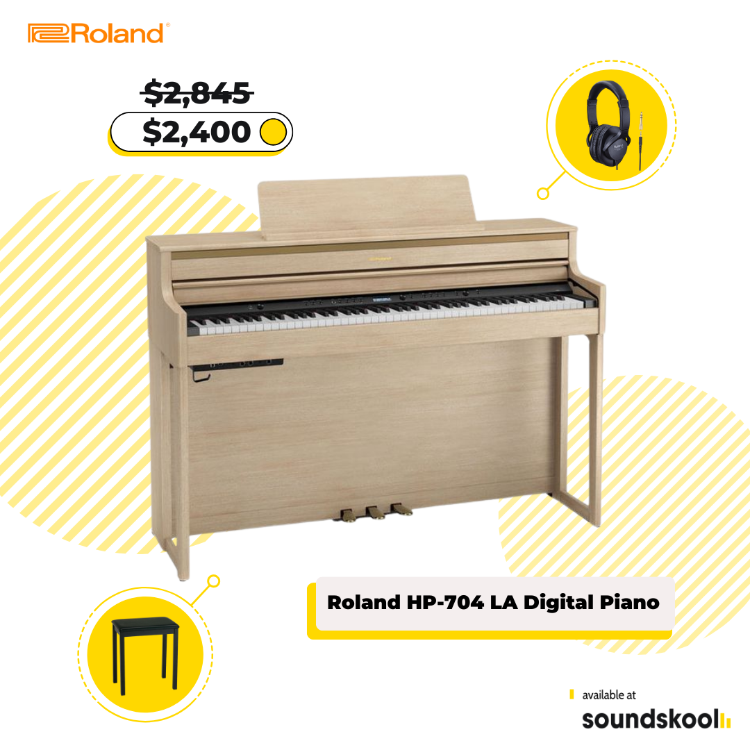 Selected items from Roland, Fender, and acoustic pianos from The Piano Shop Cambodia, all offered at the best prices for Soundskool students.