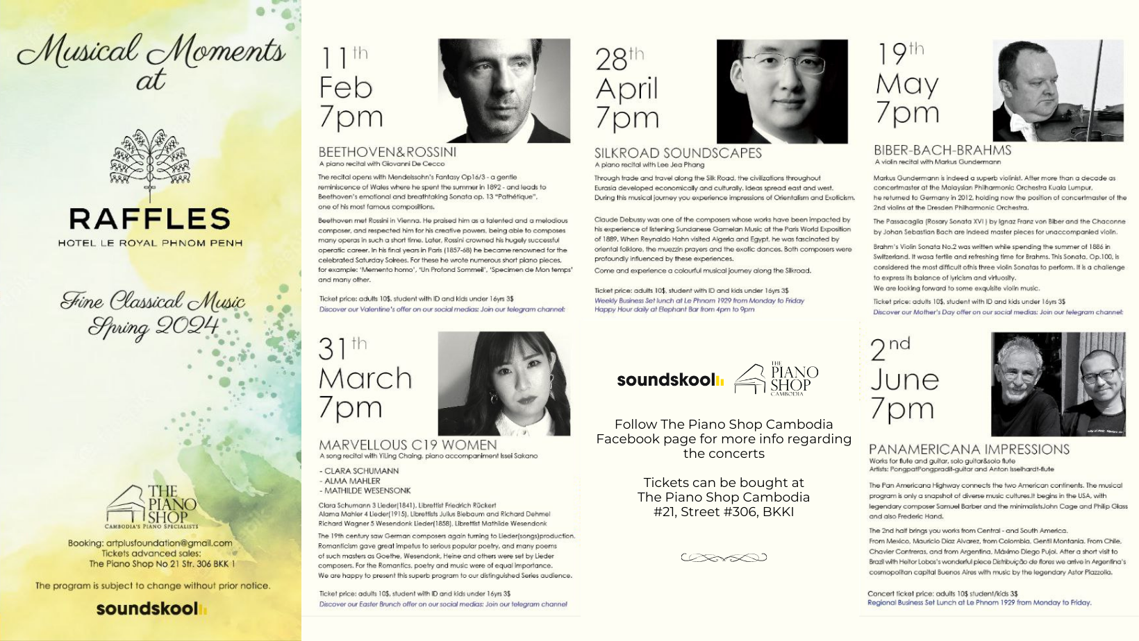 Follow The Piano Shop Cambodia Facebook page for more info about the concerts.