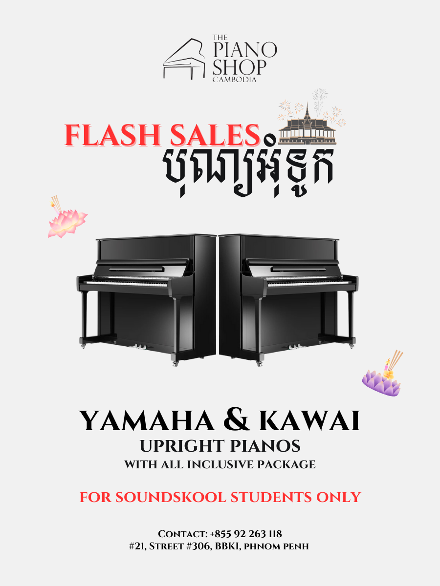 To celebrate the upcoming Water Festival, we’re excited to announce that The Piano Shop Cambodia is offering exclusive discounts on many models of Yamaha and Kawai upright pianos for ALL Soundskool students!