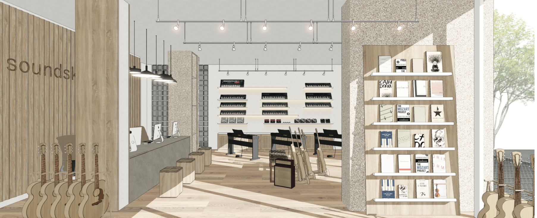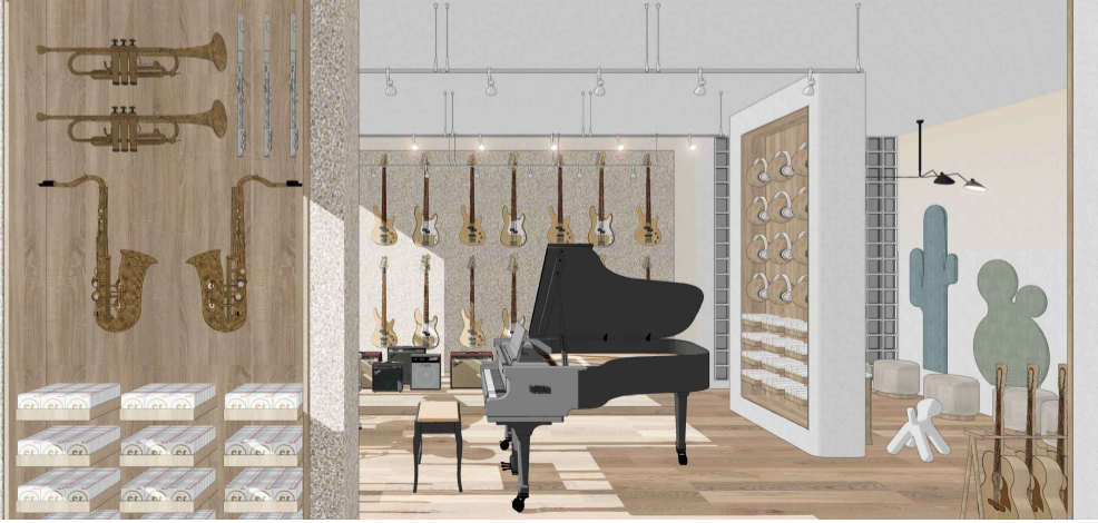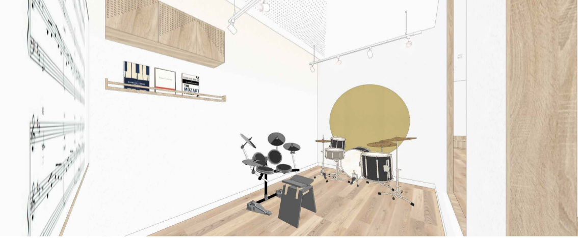 Our new Soundskool branch houses over 200sqm of musical instruments retail showroom and music classrooms, embracing minimalistic, modern layout and design, ready to develop and nurture young talents to the highest level within a stimulating, engaging, and safe academic setting.