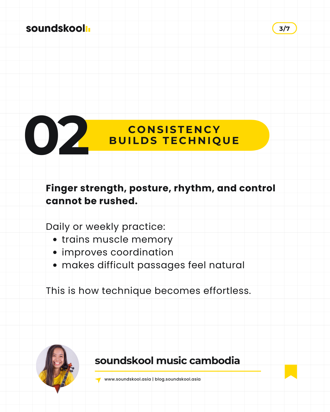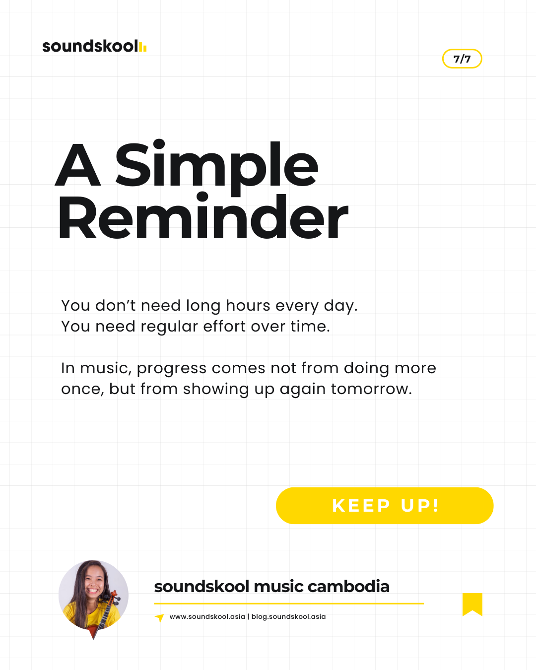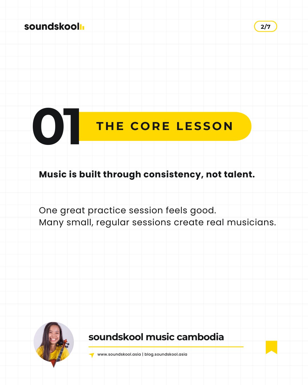 In music learning, consistency matters more than talent. Short, regular practice builds technique, confidence, and musical understanding over time.